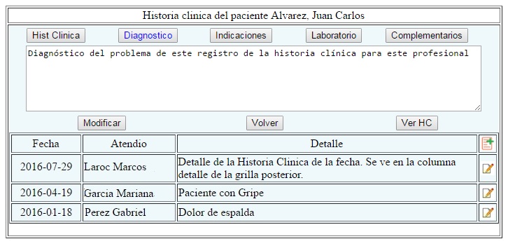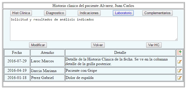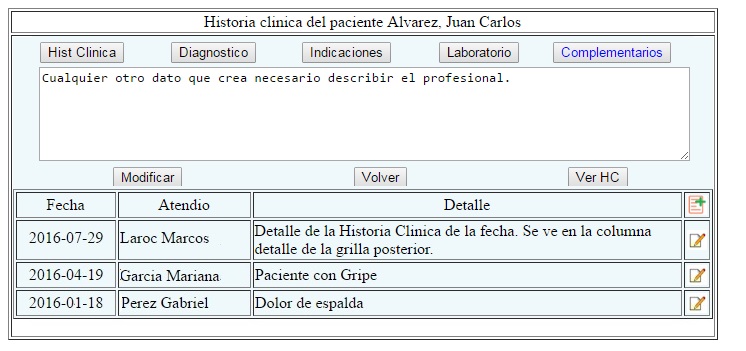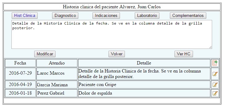 ![]() El botón permite visualizar ese detalle de Historia Clínica, y modificarlo. | ||||||